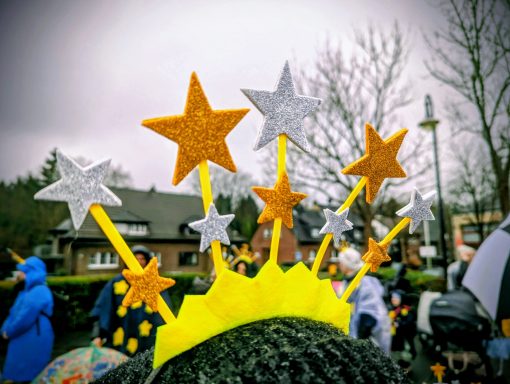Februar 2025: Einheitlicher Sterntaler-Look für den Hürther Kinderkarnevalszug